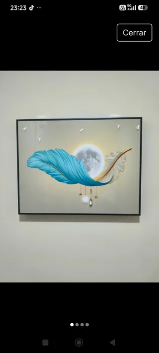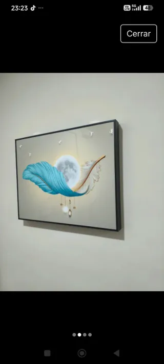 Precioso cuadro decorativo con un diseño moderno y elegante. - Representa plumas estilizadas y la luna. - Tonos suaves y llamativos. - Ideal para dar un toque especial a cualquier estancia.