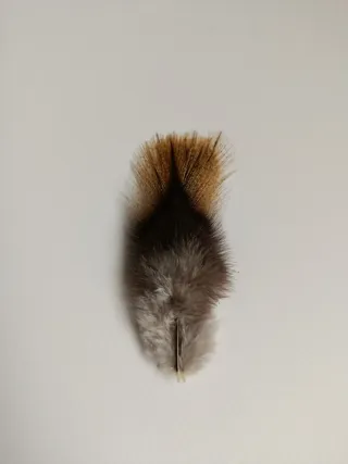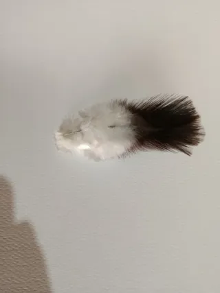 Pluma de ave, respetuosa con el medio, con tonos marrones y blancos, ideal para decoración o manualidades. - Textura suave y ligera. - Diseño natural.