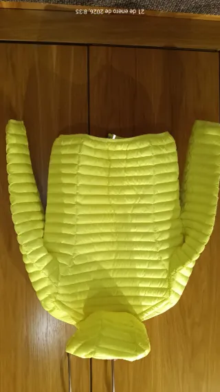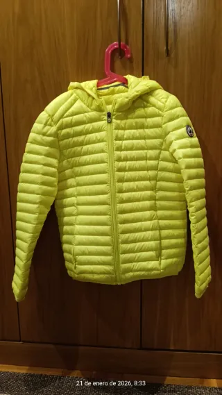 Chaqueta de plumas Jott color amarillo fluor. Super ligera y de mucho abrigo, propio del relleno de pluma, perfecta para el frío. -Prenda unisex. - Capucha integrada. - Cierre de cremallera frontal. - Bolsillos laterales, también interiores Está en perfecto estado sin una mínima mancha ni signos de haberse utilizado. Prácticamente es un reestreno, apenas se ha usado. Precio en tienda más de 200€. Prenda de gran calidad propia de la marca. Podría ser algo negociable. Aporto medidas en las fotos.