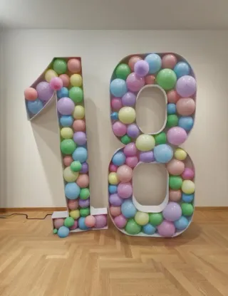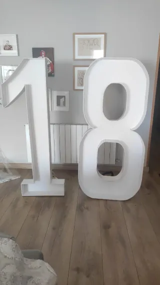 Decoración de números gigantes para celebrar 18 años. Hechos a mano con cartón pluma para decorar con globos. Medida de alto 1, 50mts - Número 1 y número 8. - Ideal para fiestas de cumpleaños.
