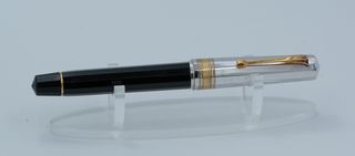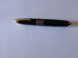Pluma estilográfica Pluna con plumín de oro de 18 quilates. - Plumín de oro de 18 quilates. - Cuerpo negro y detalles dorados.