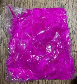 Lote variado de plumas de diferentes colores y tamaños, ideales para manualidades, disfraces o decoración. - Plumas naturales teñidas. - Colores: blanco, rojo, verde, azul, rosa, negro, gris, marrón. - Variedad de texturas y formas.