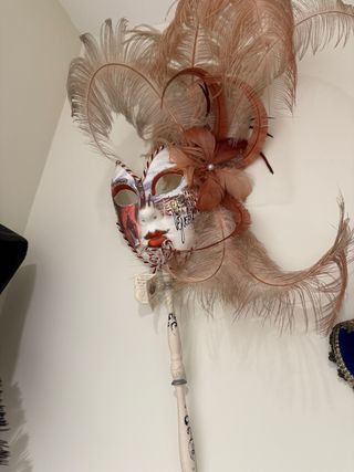 Máscara veneciana con plumas y palo