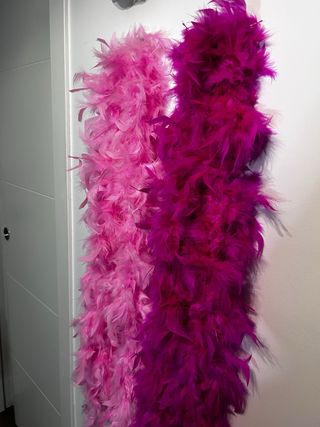 Dos boas de plumas, una en color rosa y otra en fucsia intenso. Perfectas para disfraces o eventos. - Plumas suaves y abundantes. - Colores vibrantes.