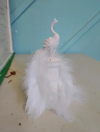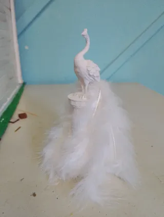 Preciosa miniatura de un pavo real blanco, ideal para coleccionistas o decoración. - Figura detallada de pavo real. - Base decorativa con pedestal. - Adornada con plumas blancas. Casa de muñecas Casita de muñecas Casas de muñecas