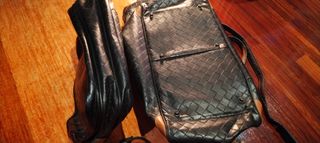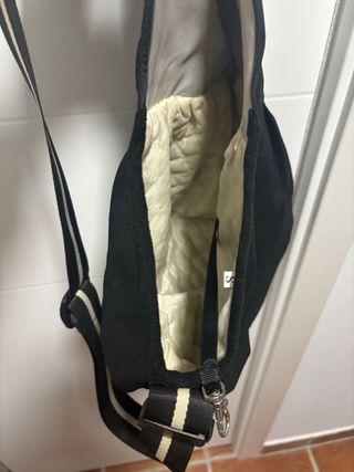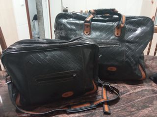 bolsas de viaje polipiel de color negro y marrón claro, marca mik. La pequeña tiene tres compartimentos de 38×7×27 cm cada uno.