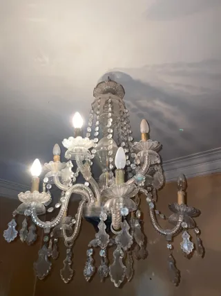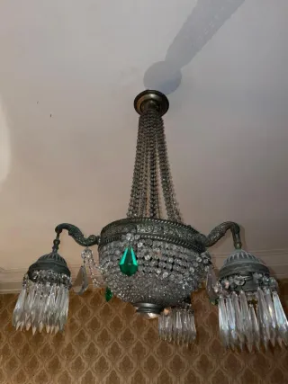Elegante juego de tres lámparas antiguas de estilo vintage, elaboradas en cristal. - Diseño clásico con múltiples cristales colgantes. - Aportan un toque de distinción a cualquier espacio. 40€ cada una Precio negociable y recogida en Barcelona