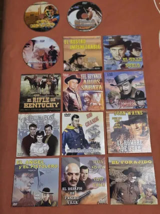 Conjunto de películas clásicas del oeste en formato DVD. Incluye títulos icónicos del género. - El Rostro Impenetrable - El Rifle de Kentucky - El Valle de la Venganza - Río Grande - El Hombre de Utah - El Forajido - El Desafío de Pancho Villa - El Gran Duelo - Adiós Sabata - El Desierto Pintado - El Ángel y el Pistolero - oro maldito - Emboscada en paso apache - La noche de los gigantes, estas 3 últimas no vienen con su emboltorio original .