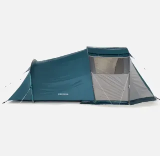 Tienda de campaña de la marca Quechua, ideal para actividades al aire libre. - Diseño espacioso y funcional. - Color verde azulado. - Material resistente.