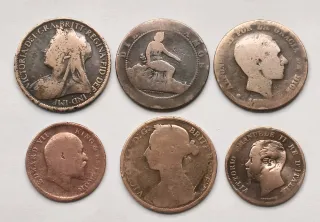 Lote de 6 monedas antiguas del S XIX; 1 Penny 1896 Reina Victoria 1 Penny 1885 Reina Victoria 1 Quarter India 1810 Eduardo VII 5 Céntimos Italia Vittorio Emmanuel II 10 Céntimos 1870 Gobierno Provisional España 10 Céntimos Alfonso XII Las que se ven en las fotos Envíos por wallapop