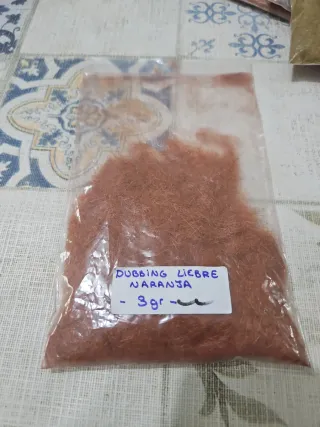 Material para montaje de moscas, tipo dubbing. - Color: Naranja. - Peso: 3 gramos. - Tipo: Liebre. Se vende la bolsa completa a 6€ gr Mira el resto de mis productos. #shimano #white farm #barracuda #pesca #montaje #fly #cdc #cuello #riñonada