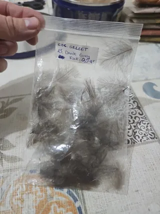 Plumas CDC SELECT, color Dark Grey, variedad Raki. - Cantidad: 0,5 gr. - Ideales para montaje de moscas secas artesanales. Se vende a 10€ gr Mira el resto de mis productos. #shimano #white farm #barracuda #pesca #montaje #fly #cdc #cuello #riñonada