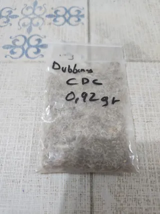 Material de dubbing CDC, conocido por su uso en pesca. - Contiene 3 gramos de material. - Color grisáceo.