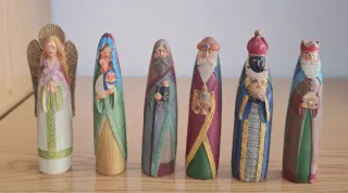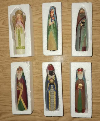 Preciosa figuras para el portal de belén, incluye un ángel, una virgen con el niño, un san José y los tres reyes magos, en su corcho original, tal cuál las fotos