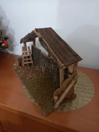 Portal de Belén artesanal, ideal para completar tu pesebre. Entrega en metro campamento linea 5 Madrid o envío. - Estructura de madera. - Decorado con musgo y detalles rústicos. - Incluye un pequeño balcón.