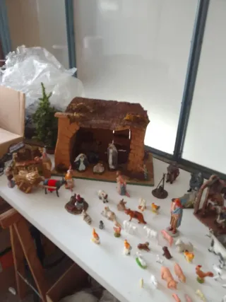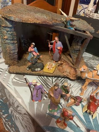 Tradicional pesebre con 11 figuras ,en perfecto estado .
