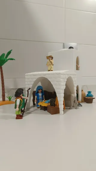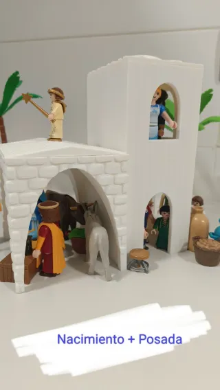 Completo portal de Belén para tus figuras de Playmobil. Ideal para recrear escenas navideñas. - no incluye figuras - diseño único, con arcos tipo Atarazanas de Sevilla - posada con techo de cúpula removible #belen #playmobil #clic #navidad