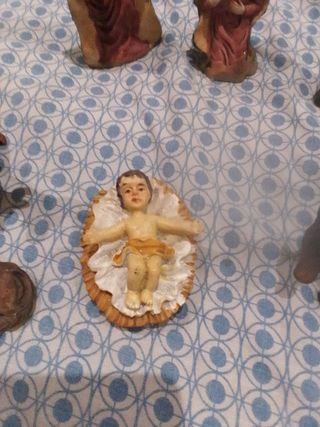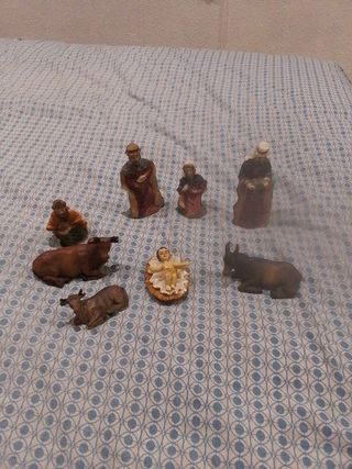 Ref4:Precioso belén navideño compuesto por 8 figuras de piedra y brillantina. Ideal para decorar tu hogar en estas fiestas. - Incluye el niño Jesús en su pesebre. - 3 figuras de animales (buey y mula). - 3 figuras adicionales y la virgen María ,incompleto .Lo que se ve en las fotos . - Figuras en buen estado, con detalles delicados.envio por wallapop.