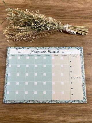 El planificador perfecto para poder organizar tu mes al máximo. Cada vez son más las cosas que tenemos en mente así que no hay nada como apuntar todo para que no se nos olviden las cosas importantes. El planificador mensual natura tiene 24 hojas para poder apuntar todo lo que necesites durante dos años. La parte superior está encolada para que puedas ir arrancando las hojas a medida que vayan pasando la semana. El planificador tiene medida A4 – 21 x 30 cm. Tenemos varias unidades.