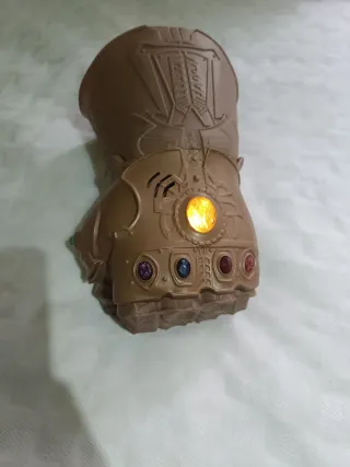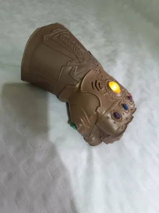 Réplica del guante de Thanos con detalles inspirados en la película. - Incluye efectos de sonido. - Diseño detallado con gemas de colores. La luz que se enciende es la del centro la que se ve en las imágenes .