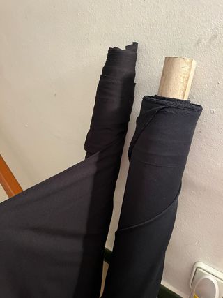 Rollo de tela de color negro, ideal para proyectos de costura o manualidades. - son dos telas diferentes. - Color negro intenso.