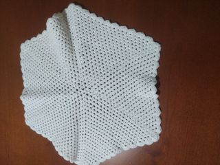 Manta artesanal tejida a mano con un delicado diseño. De 6 puntas medidas de punta a punta 30 cmt - Color blanco. - Borde festoneado.