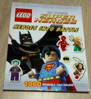 Álbum de pegatinas de LEGO DC Super Heroes. Hay algunas puestas pero el 95% está por poner - Incluye más de 1000 pegatinas. - Temática: Héroes en Batalla. - Pegatinas reutilizables a todo color.