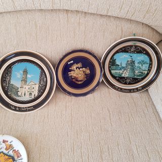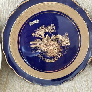Precioso plato decorativo con un diseño tradicional. - Color azul cobalto con detalles dorados. - Borde ondulado. - Motivo central con escena y texto. - Oro de Ley en etiqueta.
