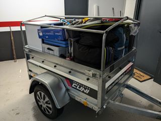 Remolque de carga basculante CUNI modelo 150 con lona. - Medidas útiles 150 x 100 x 46 cm. - Capacidad homologada ITV 600Kg. - Incluye Lona alta arquillada de 40cm para CUNI 150 medidas (150x100x46). - Incluye llave de seguridad antirobo. - Se incluye toda la documentación, incluida la ficha técnica del vehículo. - Las ruedas están en perfecto estado, habrán recorrido menos de 3 mil km. - Aparcado siempre en parking privado. Remolque comprado en 2024, usado exclusivamente para ir de camping, por lo que se encuentra en perfecto estado. Se vende porque nos hemos comprado una caravana. Precio nuevo en web +1.500€