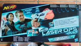 Pack de 2 blasters Nerf Laser Ops Pro. Incluye conectividad para app. - Blasters listos para jugar. - Incluye pack de 2 blasters Nerf. - Conectividad Bluetooth para la app.