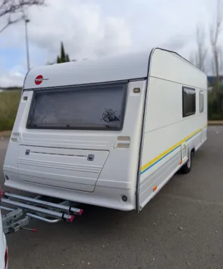 Caravana Burstner City 490TK en buen estado. -Caravana de 3 ambientes interior impecable muy cuidada del año 2000. -Lavabo con ducha y agua caliente. -Portabicicletas Fiamma. -Toldo Caravanstore y Avance completo Inaca. -ITV hasta abril 2027. -Calefacion Truma rueda de recambio estabilizador Alko. -Y como Extra viene equipada con su tienda y mueble de cocina plegable,mesa sillas,suelo,TV, microondas, vitrocerámica portátil,toldo frontal,etc.