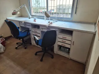 Mesa de trabajo para laboratorio de prótesis dental de dos puestos.