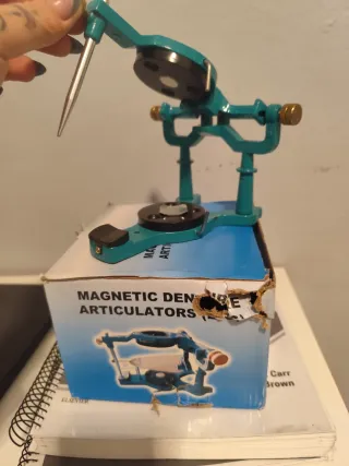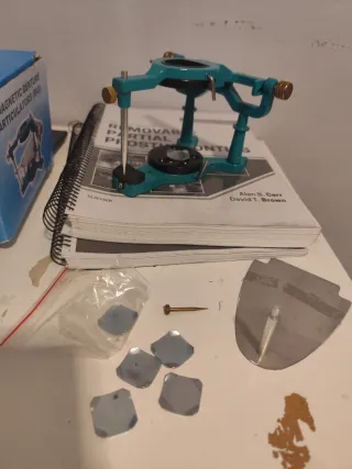 Equipo para prótesis dentales. - Articulador magnético. - Nuevo sin usar. - Color verde azulado. + Apuntes de regalo La caja vino un poco dañada y por eso se ve así, pero el producto está sin usar.