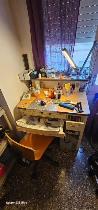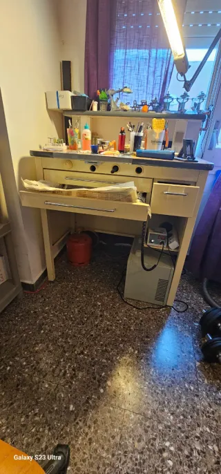 Mesa de trabajo para laboratorio de prótesis dental. Ideal para profesionales del sector.solo la mesa. - Superficie amplia y resistente. - Cajones para almacenamiento. - Incluye lámpara de trabajo. - Estructura robusta.