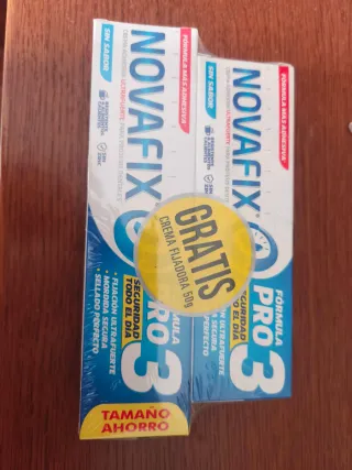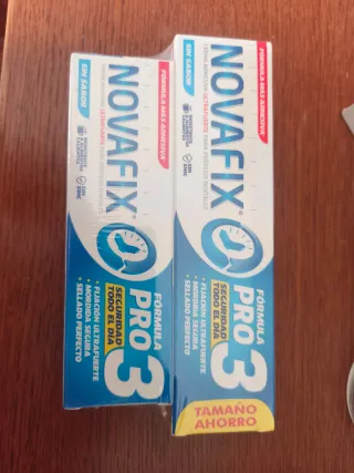 Crema adhesiva Novafix Pro 3 para prótesis dentales. Fórmula ultrafuerte sin sabor. - Fijación ultrafuerte todo el día. - Mordida segura. - Sellado perfecto. - Resistente a alimentos y bebidas calientes. - Sin zinc.
