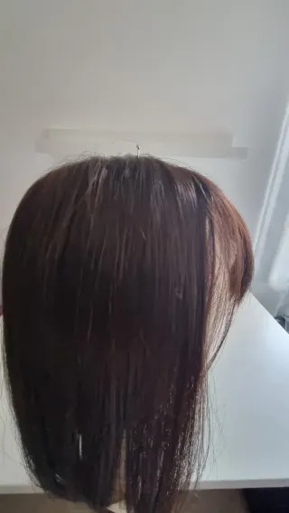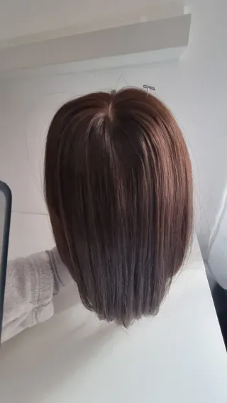 Prótesis capilar de cabello natural. Se puede planchar y teñir,la raya del cabello se puede poner en el lado que mas te guste ya que esta hecha de monofilamento y se ve super natural, Es una protesis para dar volumen a cabellos finos,( no es una peluca). Usada un par de veces. Precio de la protesis 450€,tengo la factura.