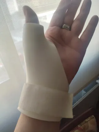Prótesis para la mano izquierda, diseñada para la lesión del dedo gordo. -Lavable con agua y jabon - Material: Plástico duro - Color: Blanco. Cierre con belcro