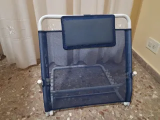 Ayuda para incorporarse en la cama o sofá. Es ligero y fácil de usar. Muy poco uso. - Estructura de metal. - Malla transpirable azul. - Cojín reposacabezas. - Patas antideslizantes. - 5 posiciones de inclinación. - 58cm de alto x 55 cm de ancho