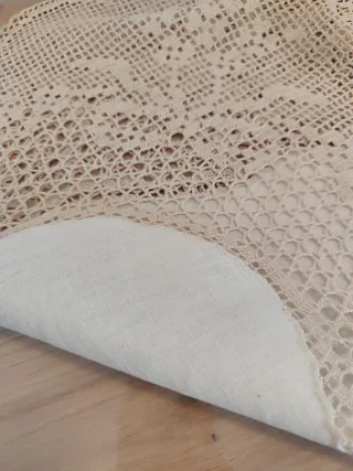 Camino de mesa beige hecho a mano combinado tela
