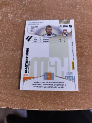 Cromo de fútbol de Mastantuono de la temporada 2025/26. - Edición Megacraks. - En perfecto estado