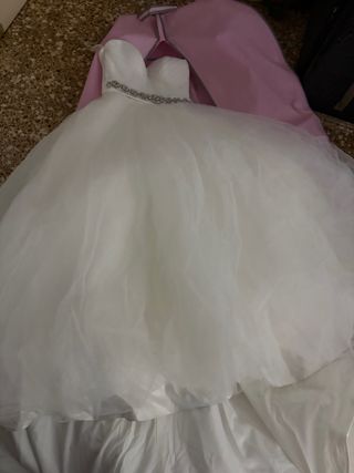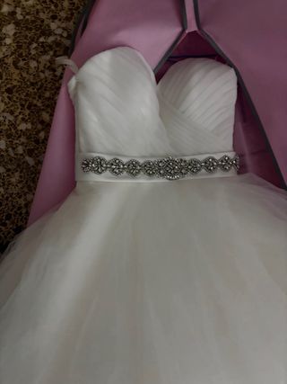 Elegante traje de novia estilo princesa, con un corpiño ajustado y falda voluminosa. - Corpiño con escote corazón. - Cinturón adornado con pedrería. - Falda de tul vaporosa. -Probar sin compromiso. -Precio algo negociable.