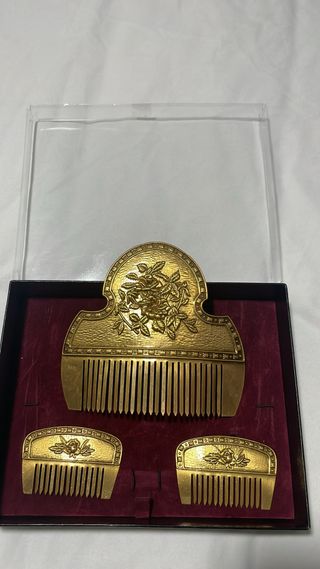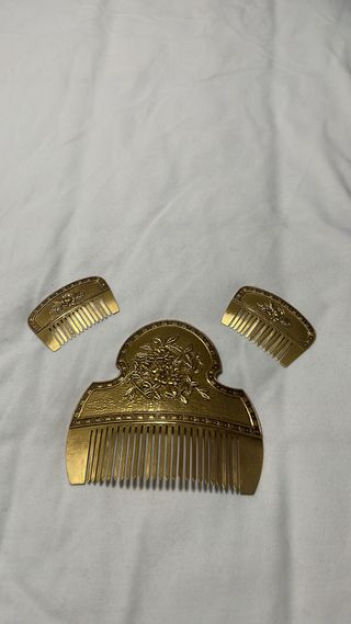 Conjunto de tres peinetas doradas con diseño. - Peinetas juveniles - Peineta central con detalle. - Dos peinetas laterales a juego con un diseño. Precio negociable SOLO VENTA EN PERSONA