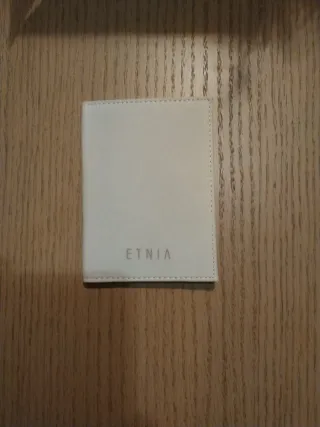 Portadocumentos de la marca ETNIA. Tamaño cartera - Color blanco roto. - Material tipo piel.