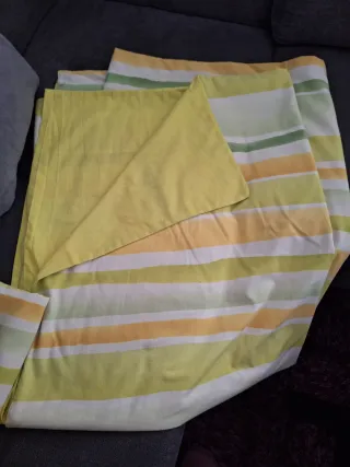 Conjunto de fundas nórdicas con un diseño alegre y colorido. - Rayas en tonos verde, amarillo y blanco. - Tejido suave y agradable al tacto.