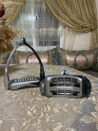 Estribos de equitación con un diseño moderno y funcional. - Fabricados en metal plateado. - Base con relieve para mayor agarre. - Incluye etiqueta de Equestrian Equipment.