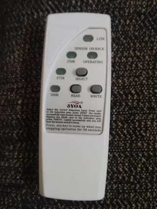 Dispositivo para leer y grabar tarjetas RFID. Permite seleccionar la banda de frecuencia correcta para la operación. - Bandas de frecuencia: 125KHz, 250KHz, 375KHz, 500KHz. - Funciones: Leer, Escribir y Seleccionar. - Se incluye lector-grabador, dos tarjetas y dos llaves EM4305 125KHz.