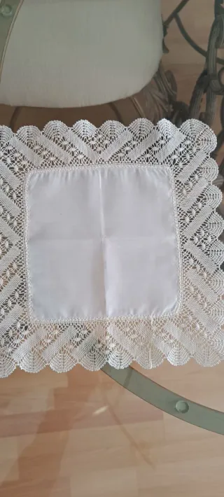Elegante pañuelo de novia con un delicado encaje de bolillo. - Encaje de bolillo artesanal. - Tejido fino y translúcido.