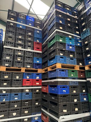 Conjunto de cajas de plástico resistentes, ideales para almacenamiento y organización. • precio por caja 0,50€ •precio por palet 50€