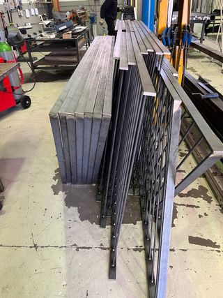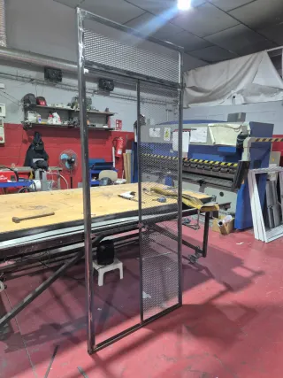 Estructura metálica para rejas, barandillas o puertas. - Diseño angular y moderno. - Material de acero. - Ideal para proyectos de herrería.