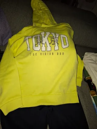 Conjunto de chándal con sudadera amarilla y pantalón negro. 9/10años - Sudadera con capucha. - Diseño Tokyo The Rising Sun en la espalda. - Puños y cintura elásticos en la sudadera. - Cintura con cordón en el pantalón.
